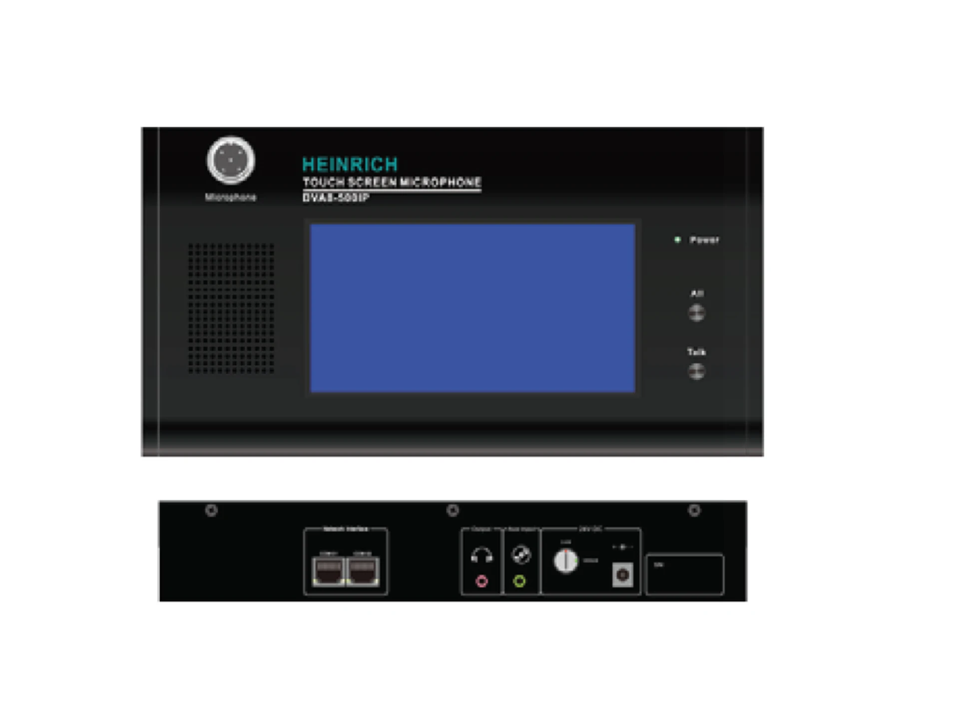 - IP-based remote microphone with touchscreen display. 96 zone selection buttons through the touchscreen and all zone/talk buttons.
